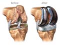 A TJR patient is given an anesthetic and the orthopedic surgeon will replace the damaged parts of the joint. For example, in an arthritic knee the damaged ends of the bones and cartilage are replaced with metal and plastic surfaces that are shaped to restore knee movement and function. In an arthritic hip, the damaged ball (the upper end of the femur)